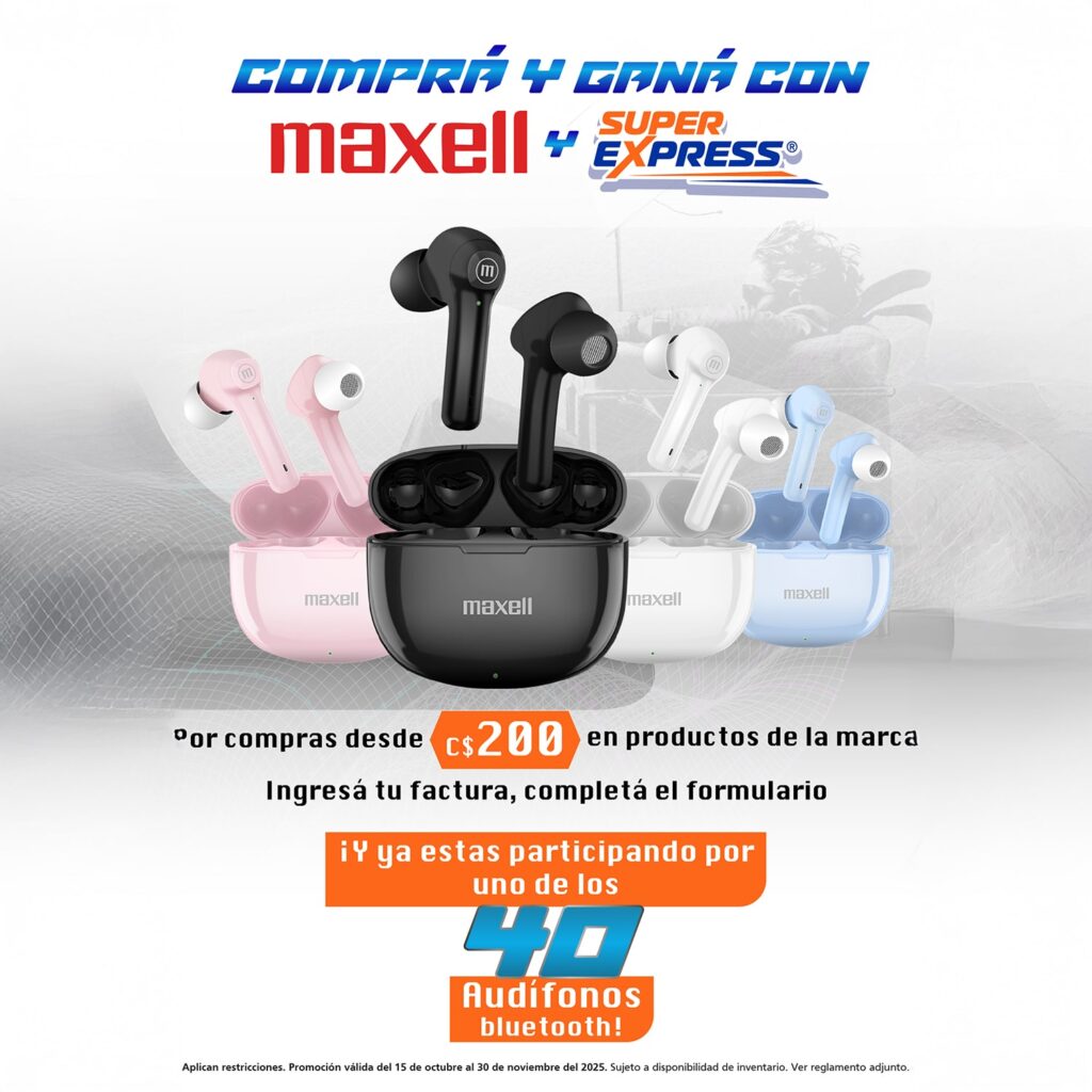 Comprá productos Maxell por C$200 o más en Super Express y participá para ganar audífonos inalámbricos todas las semanas. 🎁